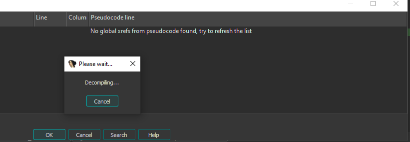 2. When I open “global cross ref to…” the window is on the front …. and I can’t dock it …. and after clicking on function it just closes….I need a window that is constantly open, with global refs to my structure, so i can click on any and see it in the psedocode, and keep going to the next function.